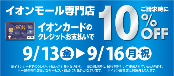 イオンカード払いでご請求時10%オフは9月13日~16日